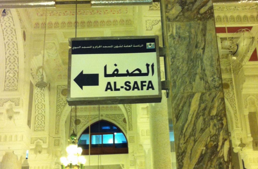 Proceed to the hill of Safa, which is located in line with the Hajar al-Aswad. There is a white sign which indicates where it is. As you’re approaching Safa, it is Sunnah to recite the following: